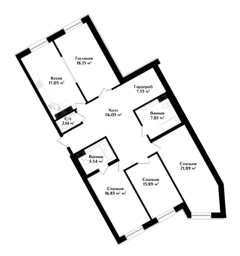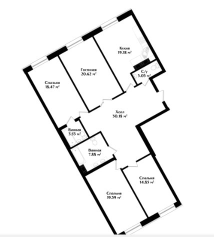 ☑   расположено 105 квартир от одной до четырех комнат